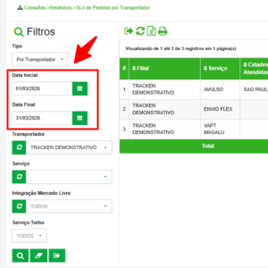 A consulta de SLA por transportador é essencial para acompanhar o desempenho e o sucesso das entregas. Com esse relatório, você visualiza rapidamente a taxa de sucesso das entregas, os atrasos e as pendências, garantindo uma gestão operacional muito mais eficiente para cada filial ou serviço.